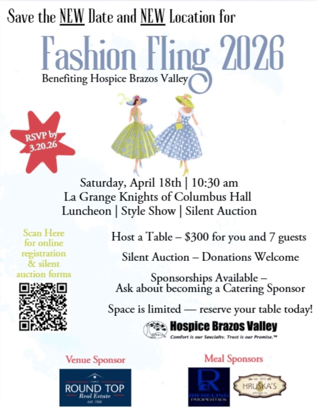 Fashion Fling 2026 Benefiting Hospice Brazos Valley Saturday, April 18th | 10:30 am La Grange Knights of Columbus Hall Luncheon | Style Show | Silent AuctionImages